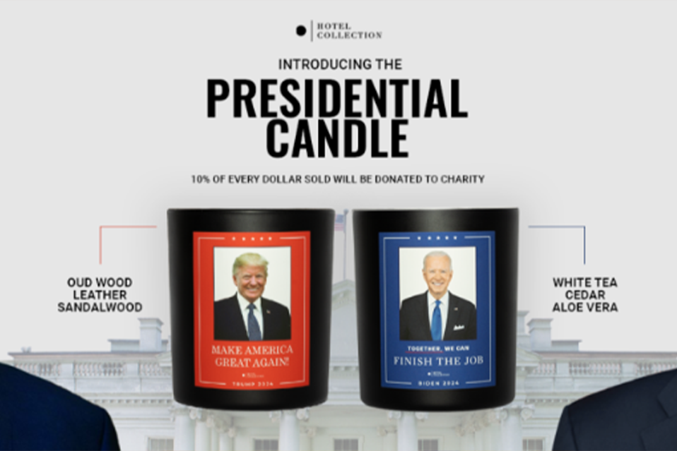 Hotel Collection has introduced two exclusive candles, one each for Biden and Trump. With every purchase, Hotel Collection will donate to the Wounded Warriors Project, putting some of the proceeds to an excellent cause.